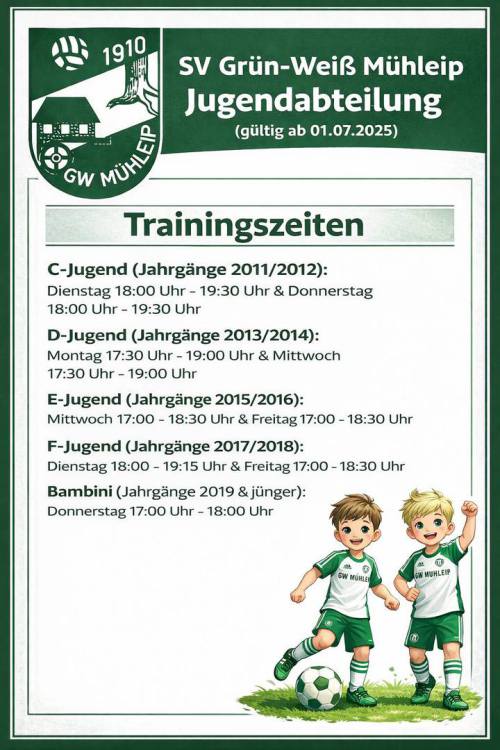 Informationen über Trainingspausen erhalten Sie bei den Trainern oder beim Jugendleiter
